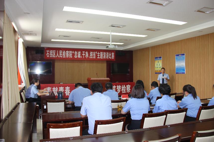 “我离开了校园,可以说是经过披荆斩棘、千军万马,终于有幸通过了公考这条独木桥,成为石拐检察院的一名新兵,走向人生的另一个阶段。” 6月2日,石拐区人民检察院举行“ 忠诚、干净、担当”主题演讲比赛。