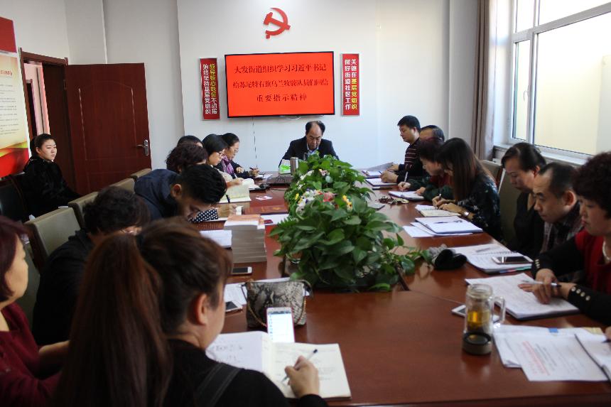 2017年12月27日,大发街道组织全体干部职工学习习近平书记给苏尼特右旗乌兰牧骑队员们回信重要指示精神。