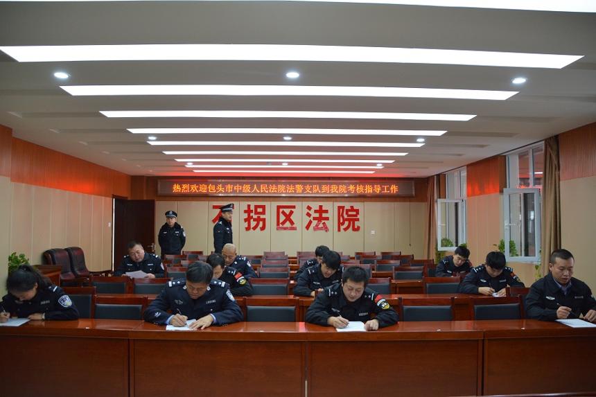 近日,市中院法警支队对石拐区法院法警大队2017年度司法警务工作进行了考核,本次考核内容涵盖警务安全建设、司法警察专业技能、基础理论、基本体能和基本技能5个部分,涉及安检设施检查、突发事件情况处置、男女警全装跑、擒敌拳等20个科目。
